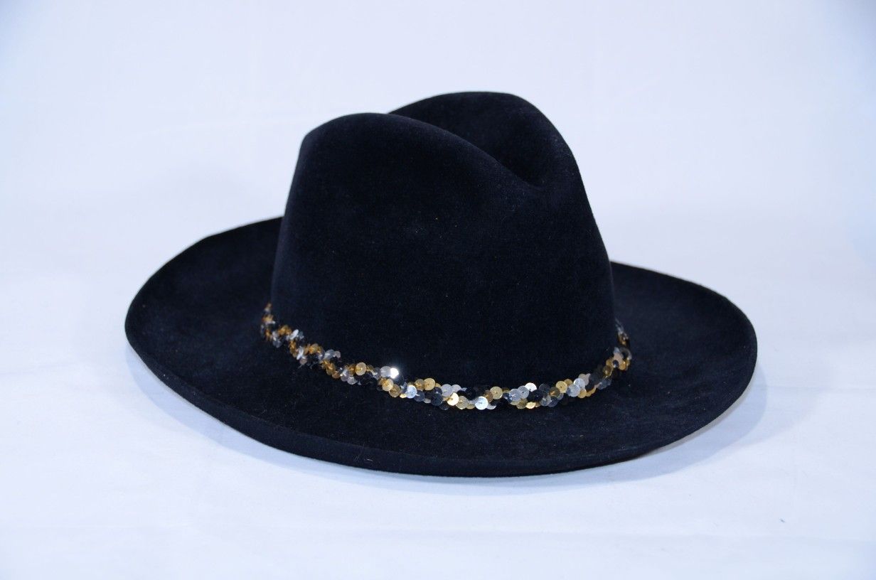 Ladies Stetson Hat ▪︎ Black ▪︎ With Silver / Black / Gold Sequin Hat Band ▪︎ John B. Stetson Co. ▪︎ "The Gun Club" ▪︎ ~12¾" x 14"