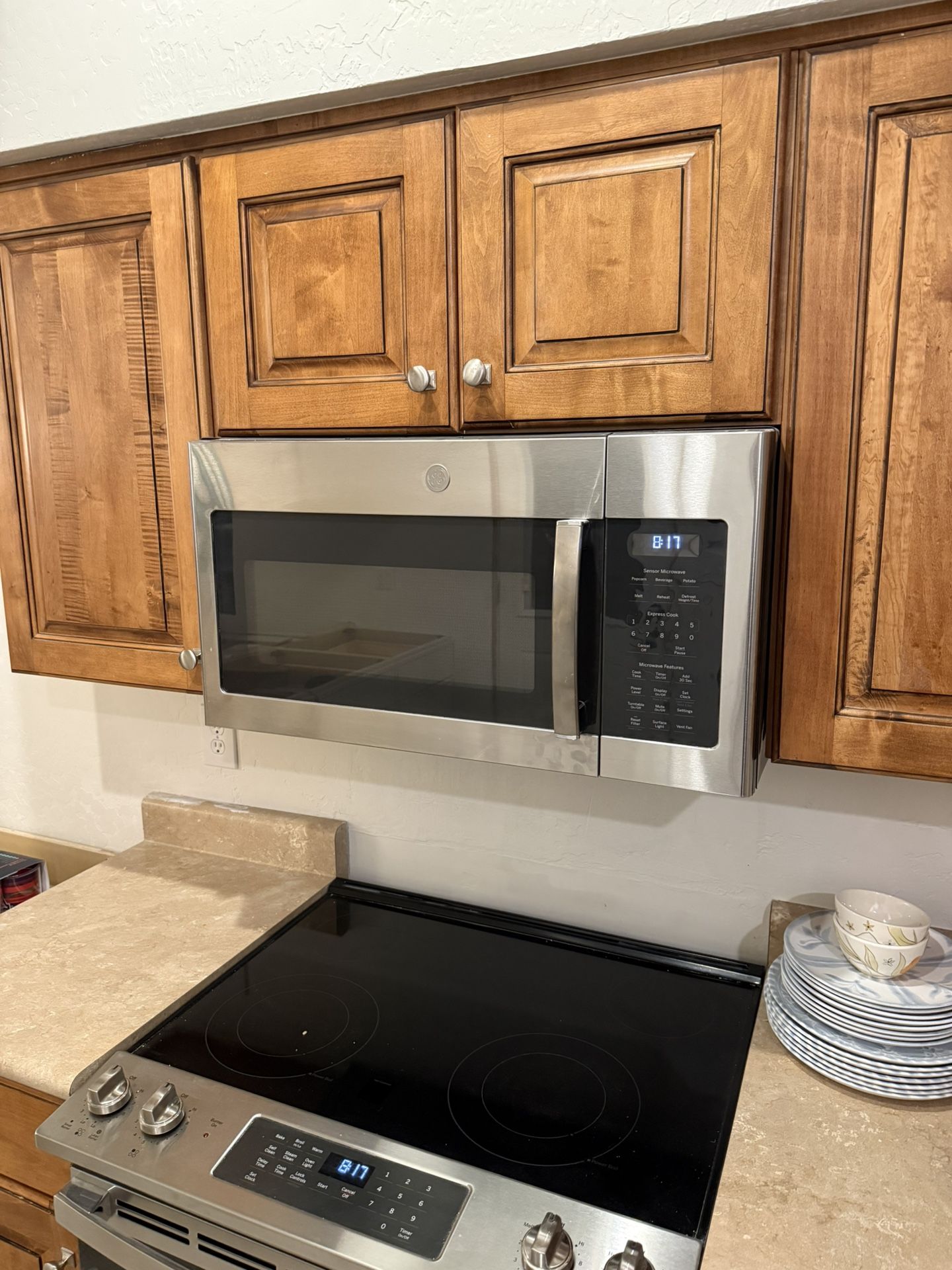 Used above range Microwave, 30” wide, 16.5” tall, 15” deep. Works perfectly, just updating our kitchen and moving the microwave.