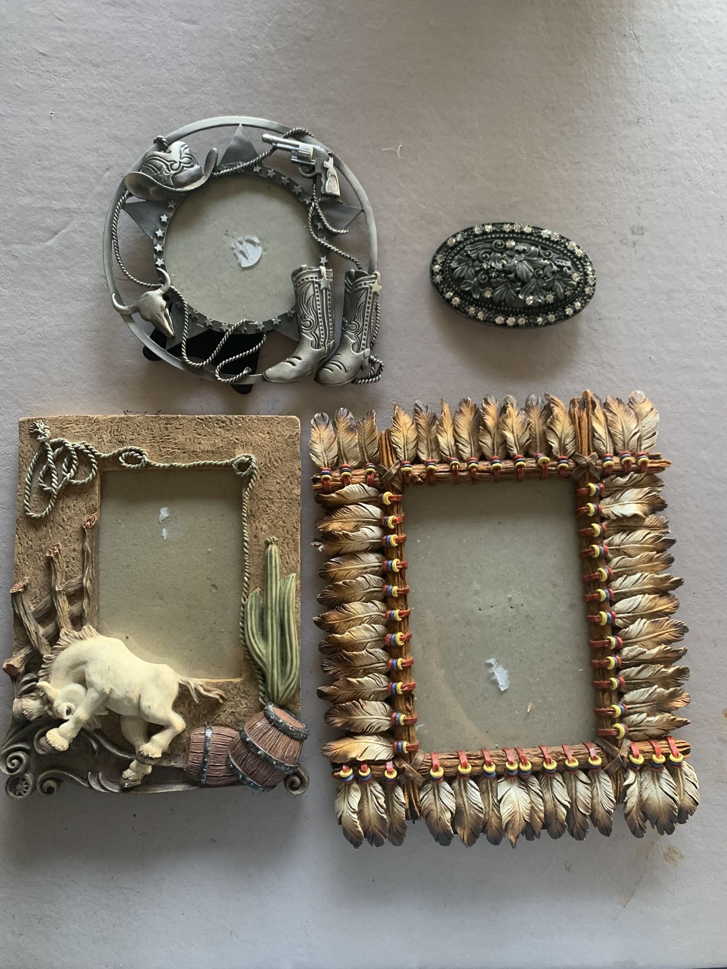 3 Picture Frames And One Belt Bucle