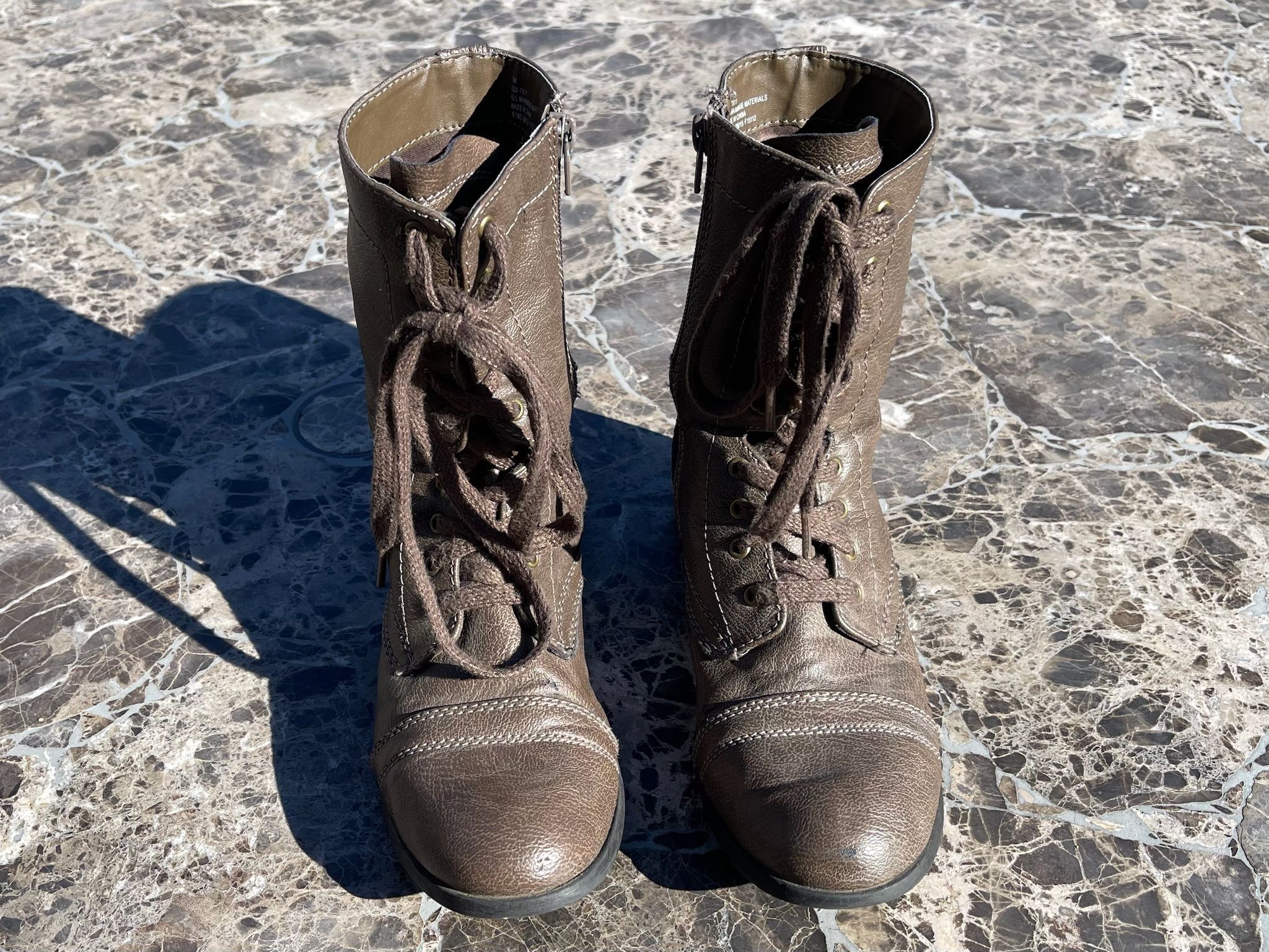 Ladies zip, lace up fashion boots. Size 7. Good condition.