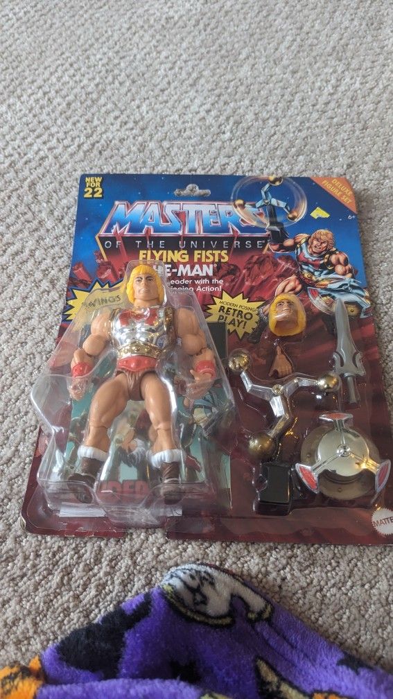 Dated 2021 5.5 inches action figure he-man masters of the universe action figure .flying fists..bottom of the package is slightly open but never taken out of package in new condition..make offer price negotiable