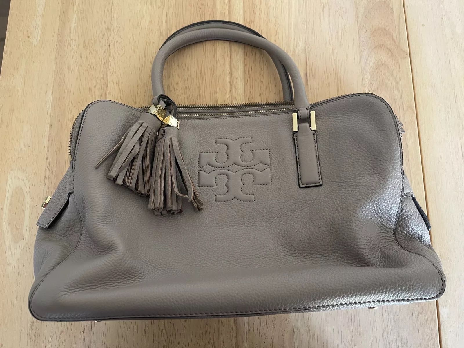 Tory Burch Leather Thea Triple Zip Compartment Tassel Satchel Bag Dust Storm