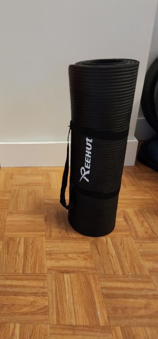 Reehut 1/2-inch extra thick, high-density NBR yoga mat for Pilates, exercise, and other activities, with carrying strap, black.