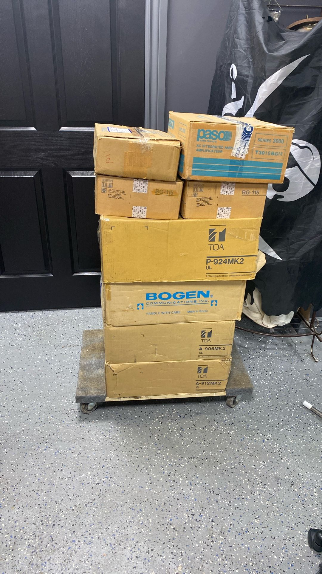 Condition: New / Unopened boxes Brands: TOA Corporation (Japan) & BOOGEN Models Available: • TOA BG-115 • TOA P-924MK2 • TOA A-906MK2 • TOA A-912MK2 • BOOGEN GS-250 Description: High-quality commercial audio amplifiers, ideal for restaurants, churches, schools, studios, gyms, and professional sound installations. All units are factory sealed, never used, and stored in excellent condition. Highlights: • Premium build quality from trusted brands • UL Certified models • Multiple input options (Mic/Aux) • Ideal for PA systems and multi-room sound setups Everything sold together as package deal Sold as is