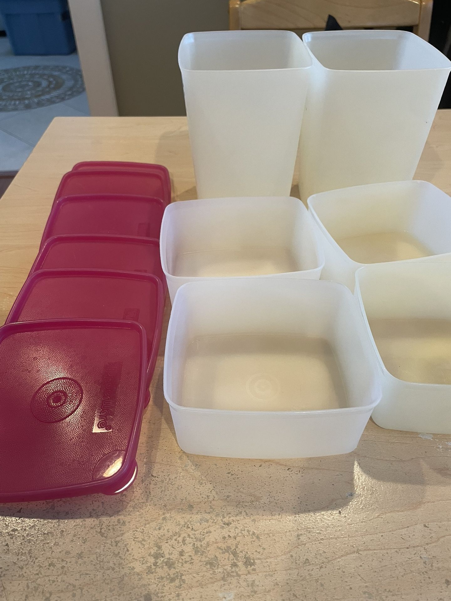 6 Tupperware Freezer Mates Pink lids 2 tall 4 shallow $35 for 6 containers