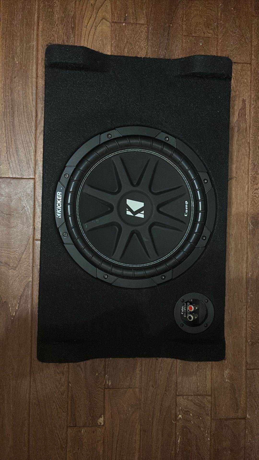 Low profile subwoofer. Never been pushed hard. Comes with 400 watt mono block amp. Sub is 300 watt rms at 4ohms.