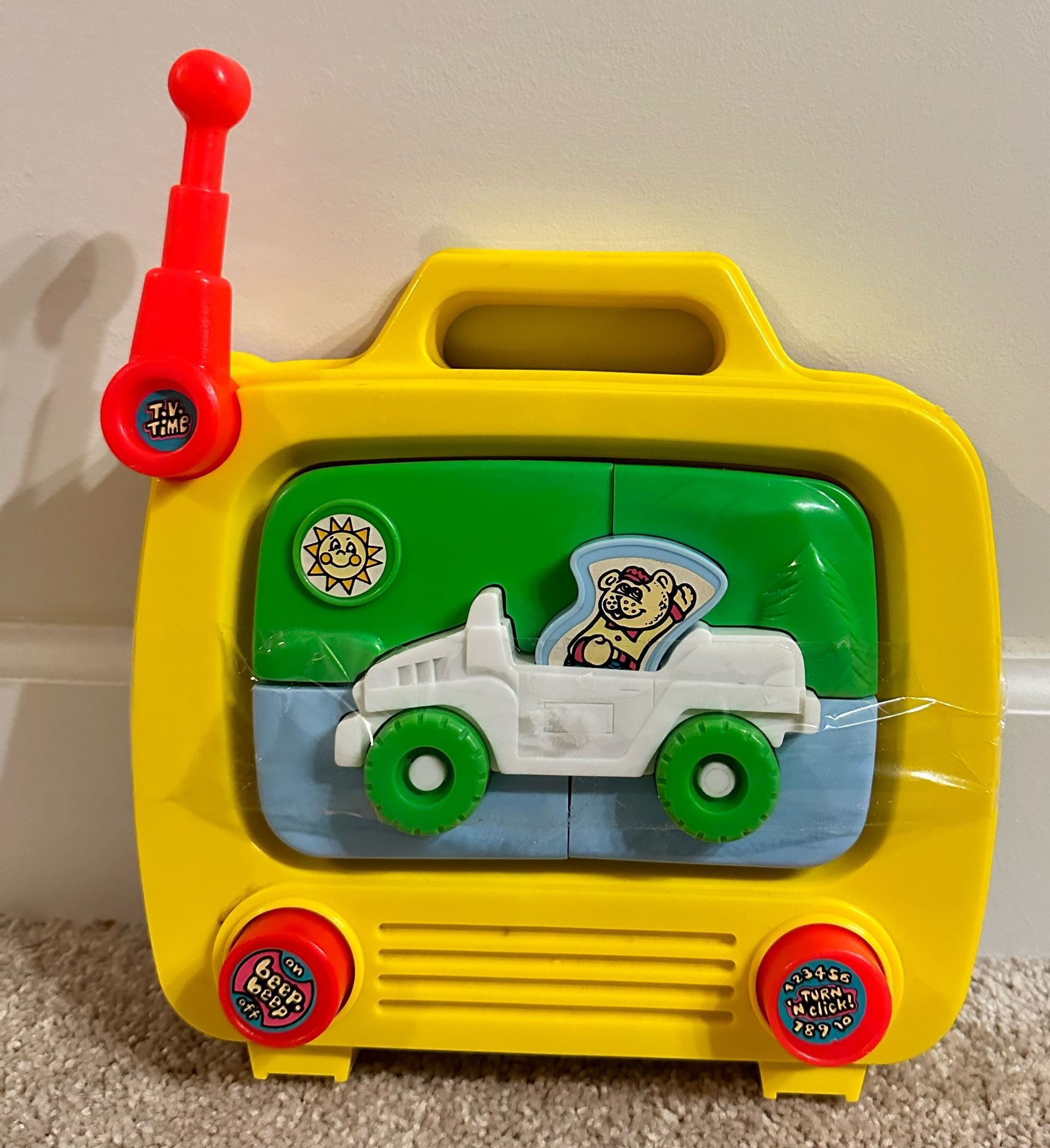 Vintage 1970s Amloid Preschool TV Time Play Plastic 3D Puzzle Toy Bear In Car