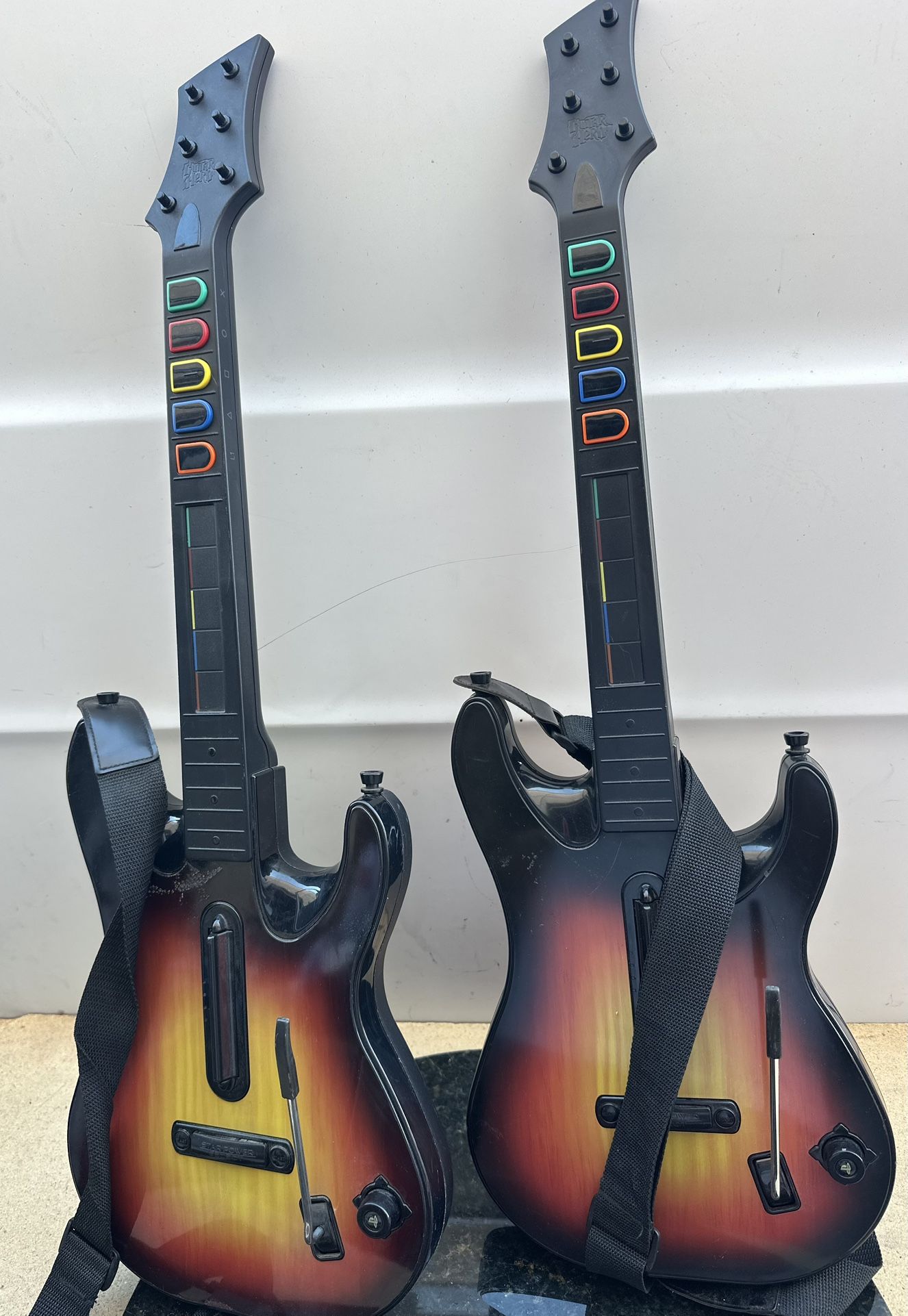 Lot Of (2) PS3 Guitar Hero World Tour Sunburst Wireless Guitar - Red Octane w “No” Dongle Tested