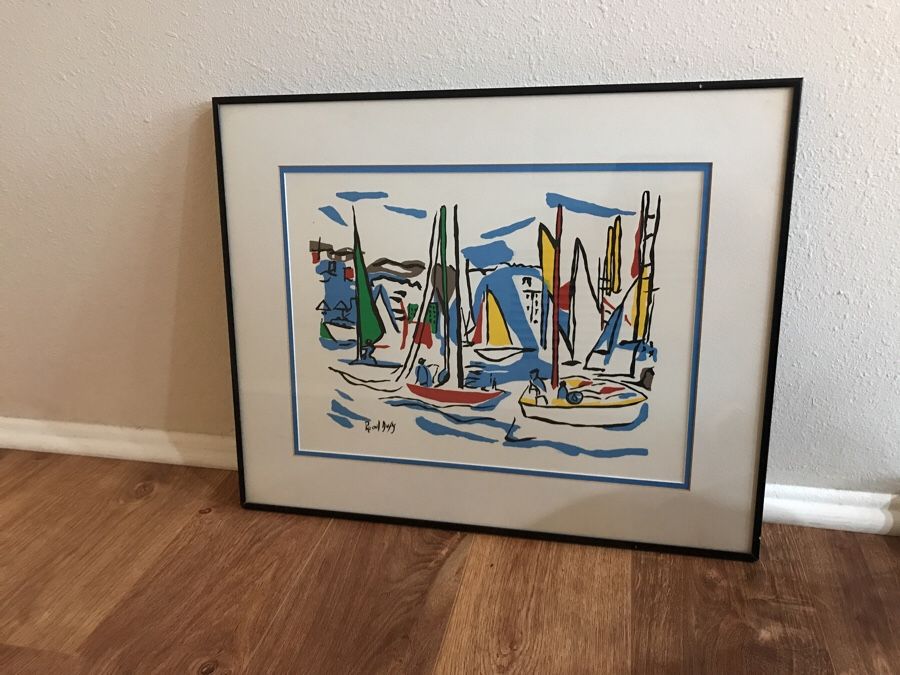 Abstract Boat Harbor Scene! Framed beautifully. Great piece or Art Work!