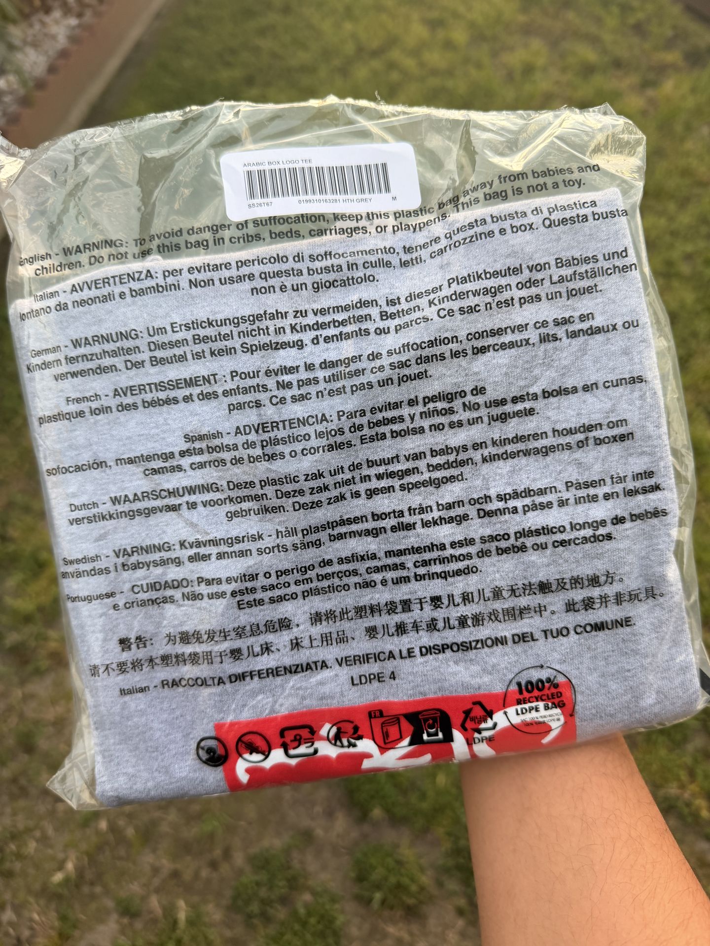 Supreme arabic box logo tee grey size medium