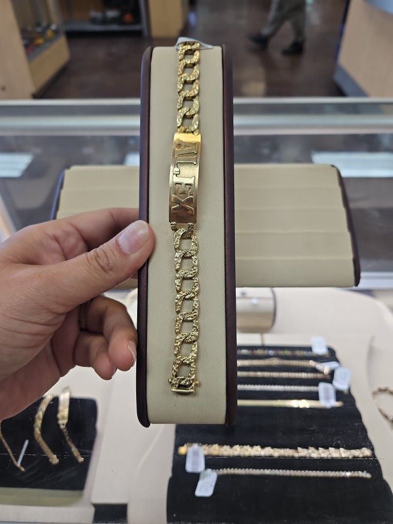 Mens 14kt nugget style ID bracelet 37.4 grams Layaway available 10% down Super Pawn 51st and Roosevelt