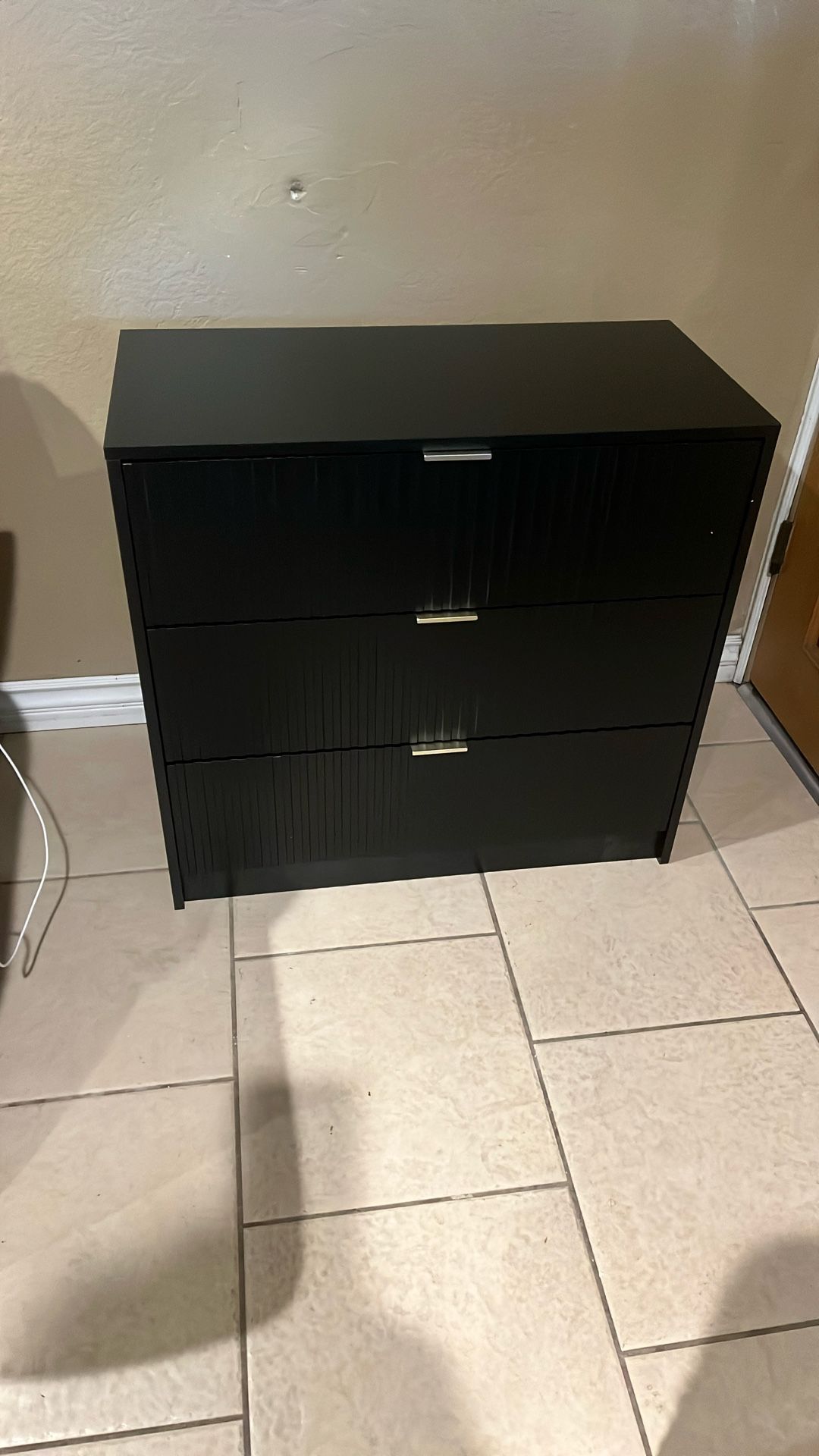 Black Dresser for Bedroom, Modern Dresser with 3 Drawers and Smooth Slides, Wide Chest of Drawers with Golden Handles for Bedroom, Living Room, Closet, 15.7" D x 31.5" W x 29.6" H. Black assembled for you