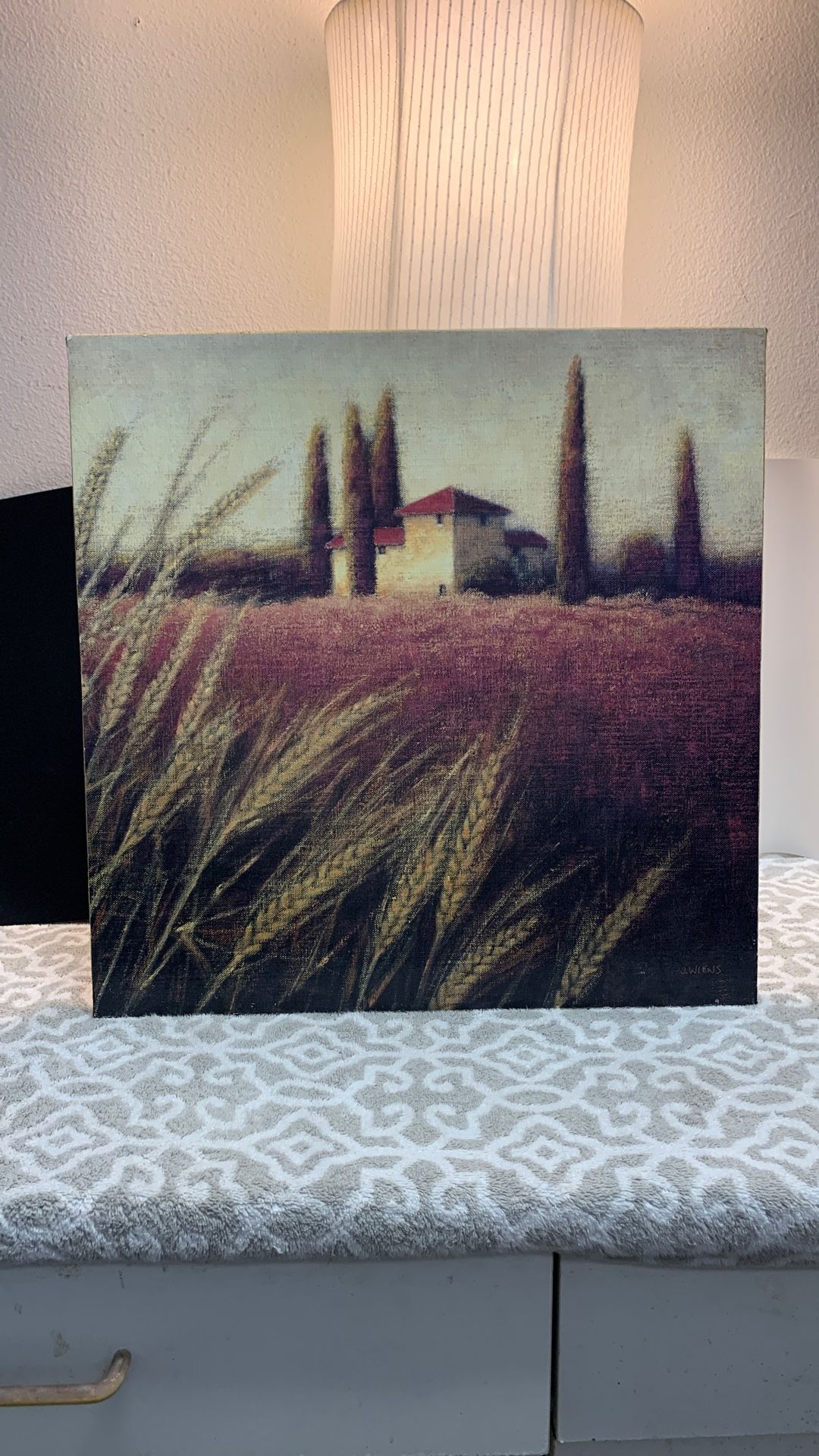 Beautiful Art “Tuscan Fields” Print By James Wines, Burlap & Canvas Painting, 20 X 20”