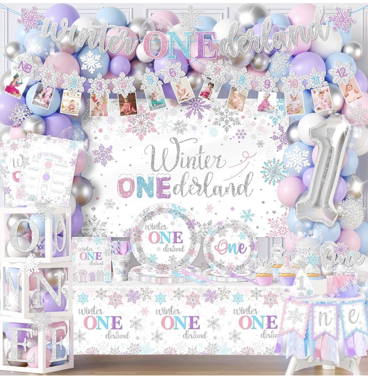 FREE!!! I have most of this Winter ONEderland set if interested. Missing half the balloons and most plates, napkins, and cups, and the all about me poster. Color coordinator plates, napkins, and cups included as well as 5 themed goody bags.