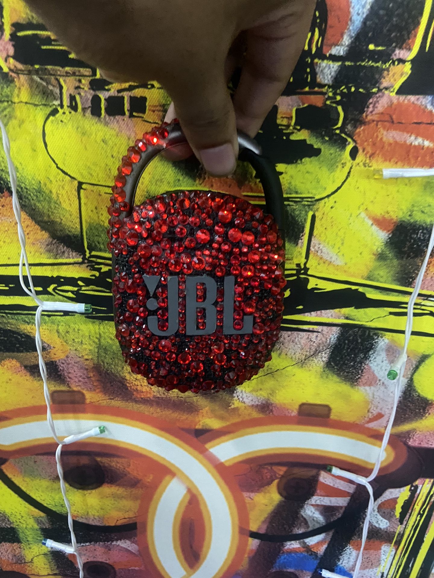 It’s a rhinestones speaker works well and is very loud Gud for playing music and for styling