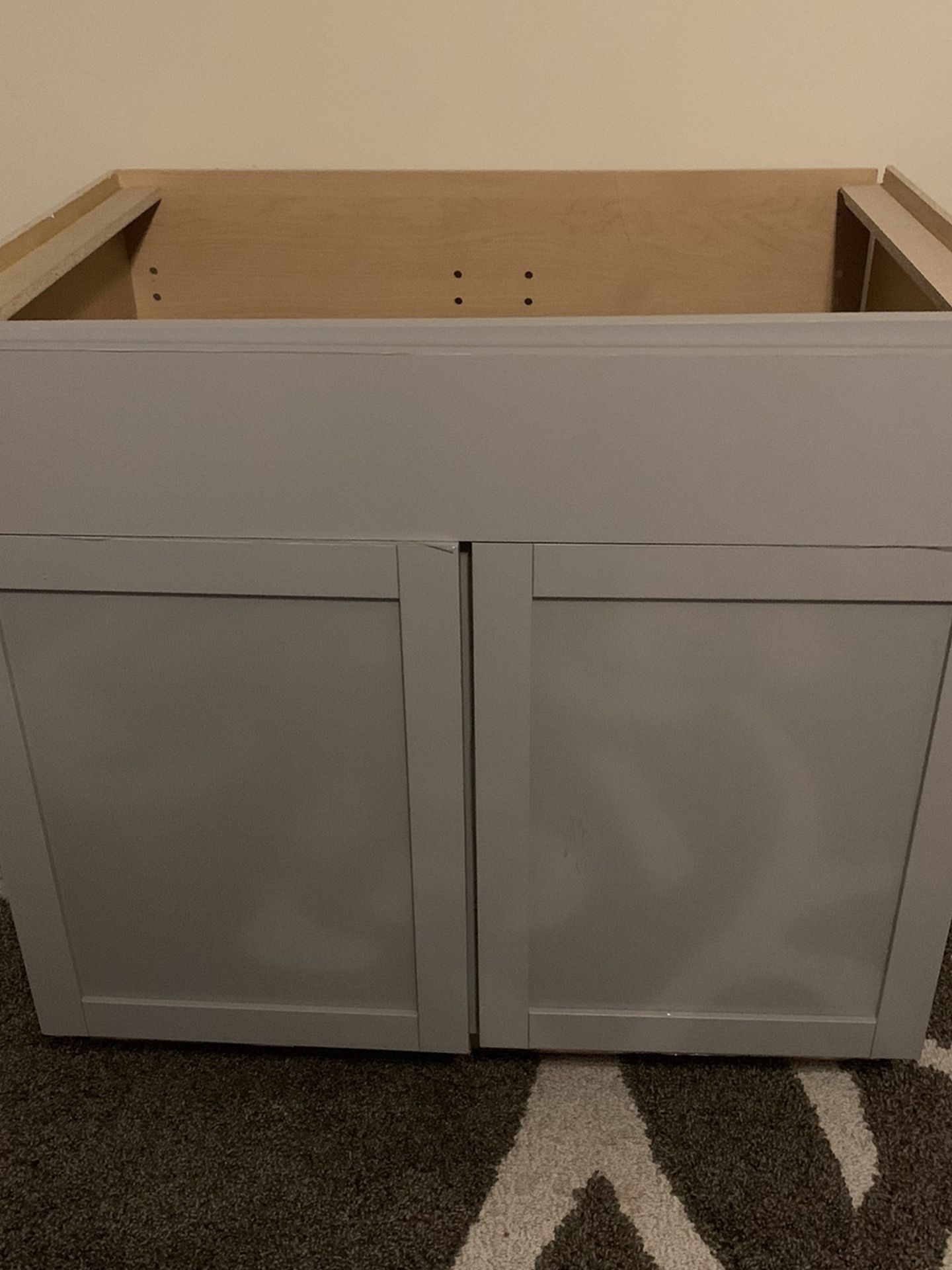 Selling this beautiful sink base cabinet took it out the box to show y’all what it will need it the back of it an the bottom of the back everything else is in great shape it even has the rap on the front message me if you’re interested