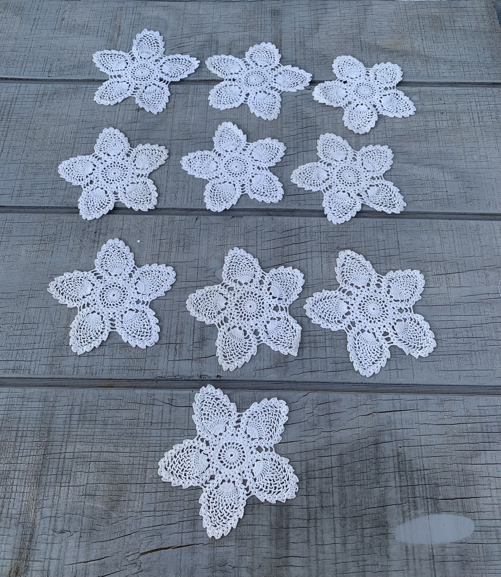 Set of 10 Vintage Handmade Crochet Lace Motifs – 5.5” White Pineapple Appliques