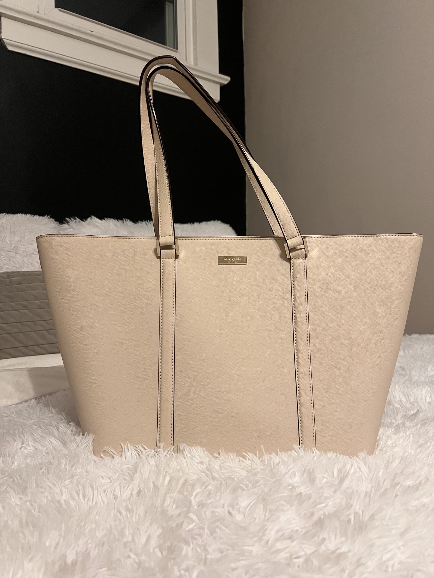 BRAND NEW. NEVER USED. Large tote bag, fits laptop. Handles slightly warped from hanging.