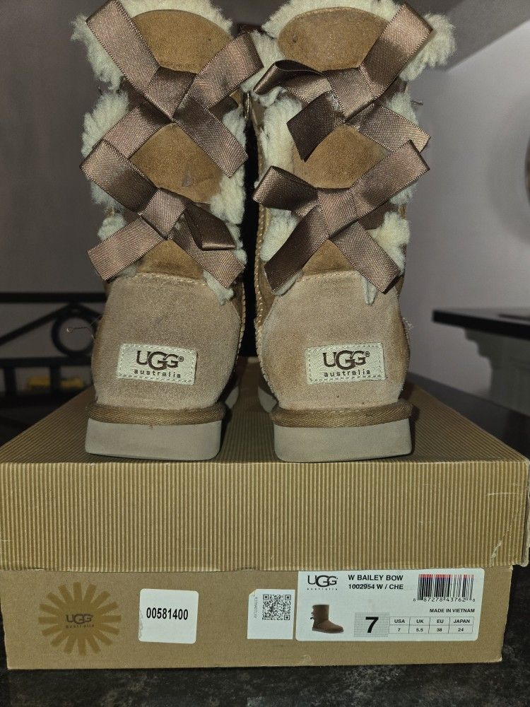 Size 7 Ugg brown boots w Bailey bow. Worn in snow 1 time.