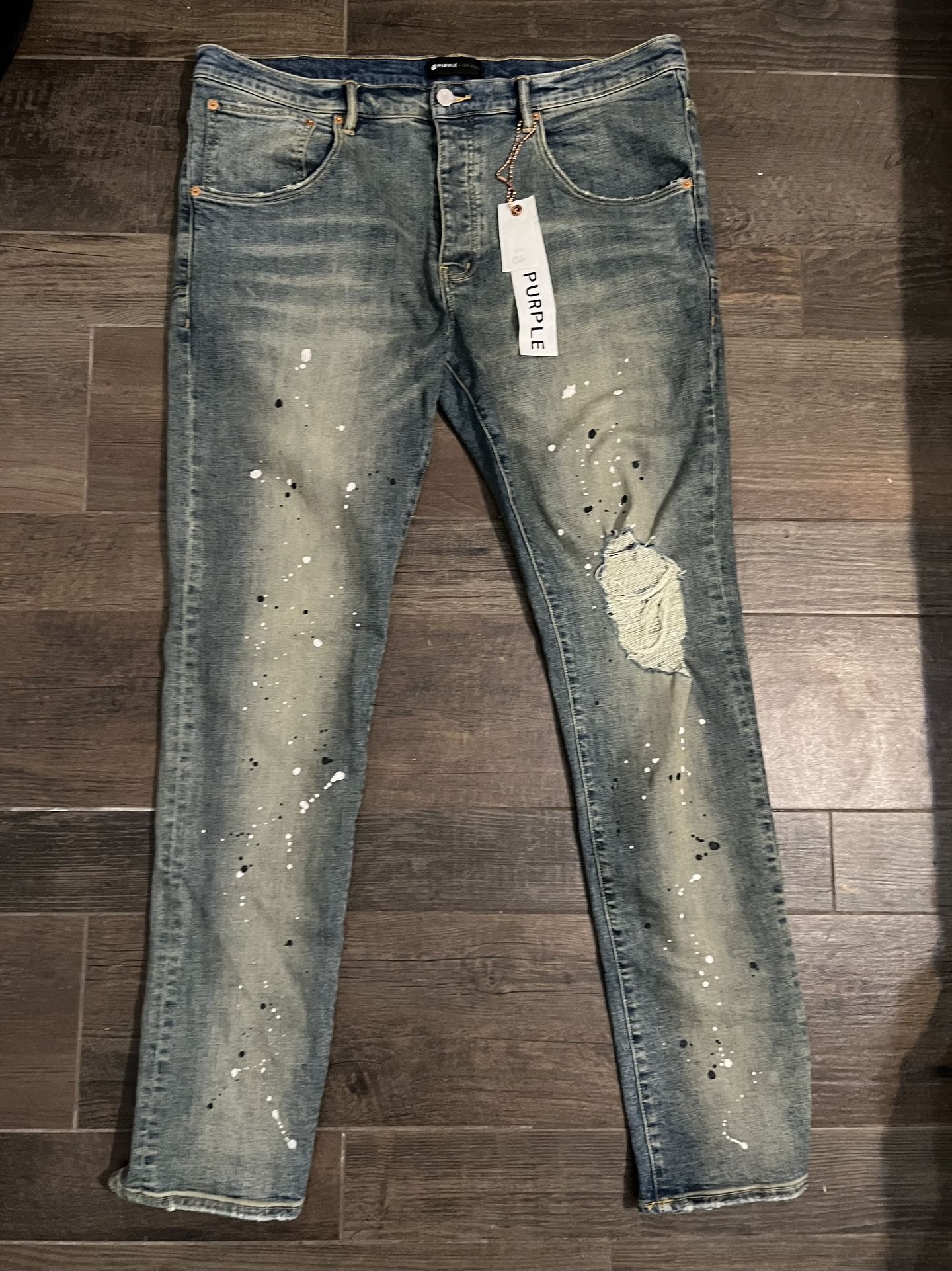 Purple Brand Mens jeans Mid indigo destroy paint Size 40 With tags ^pick up locations are Los Alamitos or Anaheim*