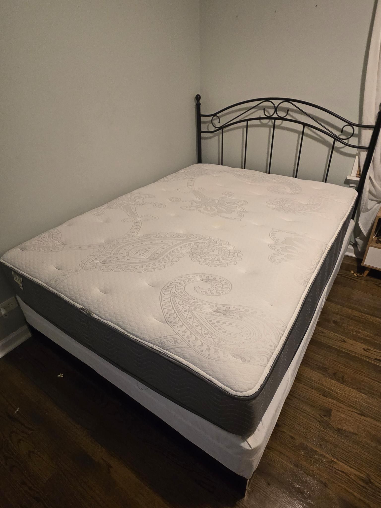 Queen Mattress, Box Spring, and Frame in Good condition.