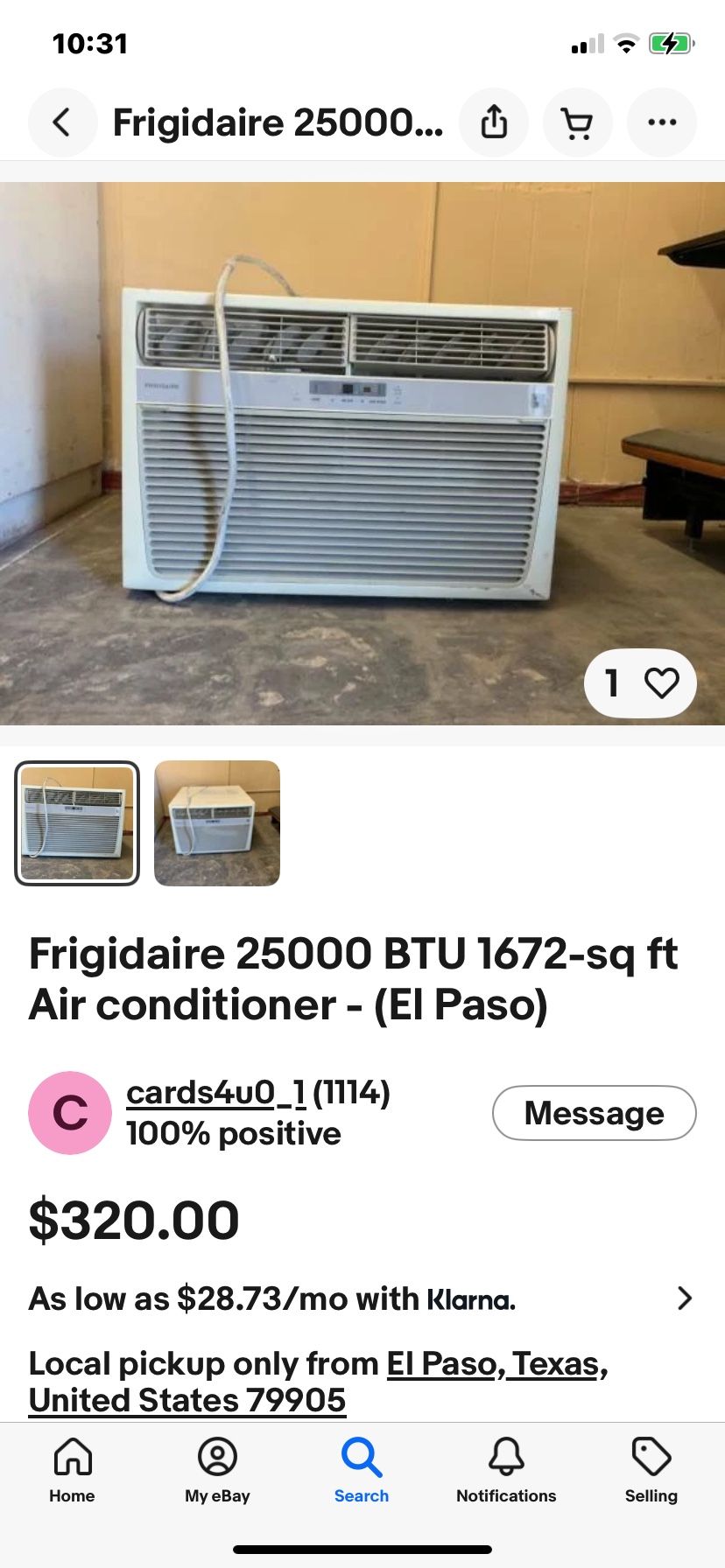 Frigidaire air conditioner, energy star • excellent condition • cranks out super cold air • used • can test out before purchasing • 28 W x 19” H x 26” D • seen them go for over 300.00 used • I’m selling for 250.00 good deal