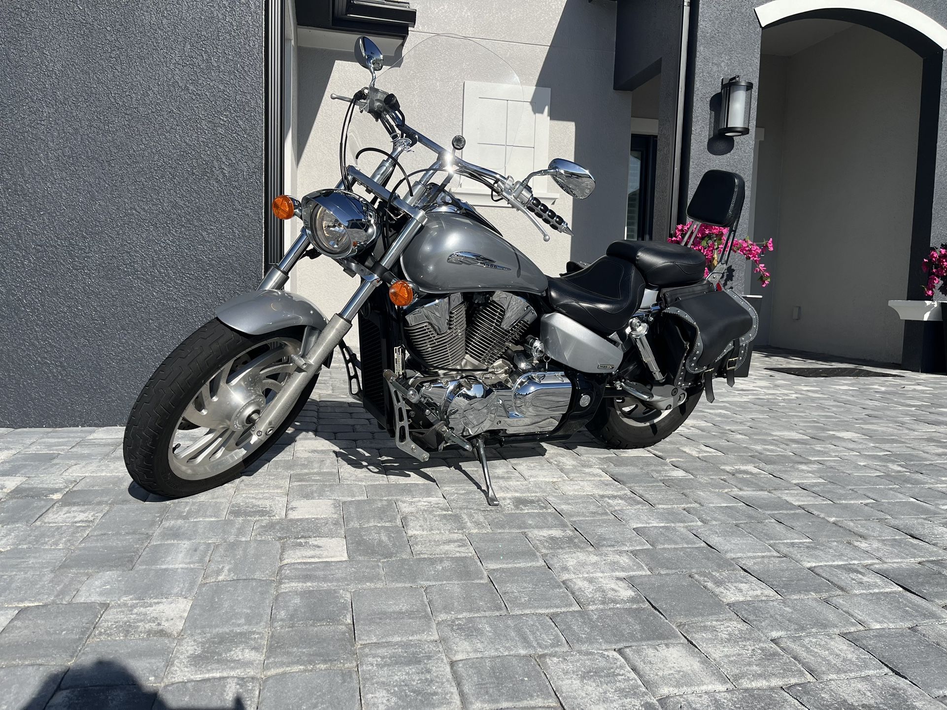 Honda VTX 2004. Less than 9000 miles. Mustang seats Passenger back recliner Windshield Saddle bags 2 silver helmets Charger New rear pads Always garage keep