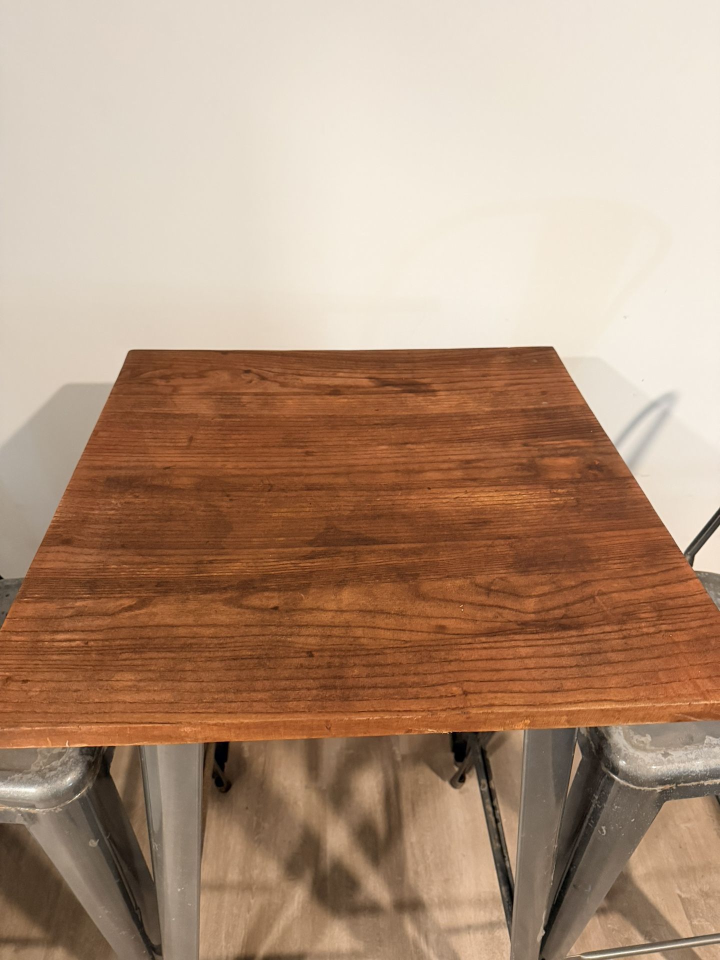 Bar Table w/ 2 Stools – Solid & Stylish Price: $120 OBO Description: Bar-height table set with 2 metal stools. Very sturdy, clean, and great for small spaces, apartments, studios, or Airbnb units. • Wood tabletop • Metal Tolix-style stools • Compact & space-saving • Used, good condition (normal wear) Seats 2 comfortably. 📍 Local pickup only 💬 Message me if interested