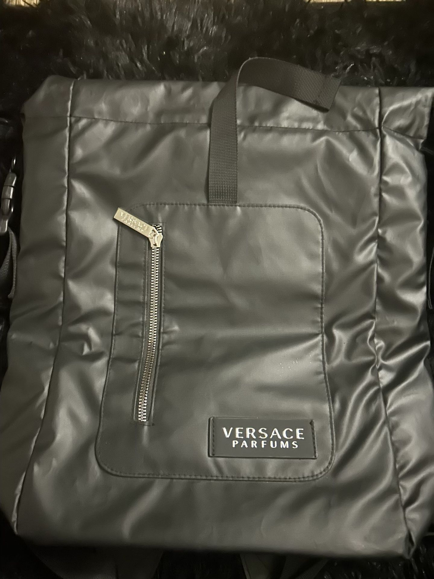 Black **Versace Parfums backpack β clean & ready to go πΌπ₯ No rips or damage Good condition Spacious + lightweight Fire everyday bag π° $60 OR BEST OFFER (first come first serve) π Pickup only β‘ Need gone ASAP β message me now!