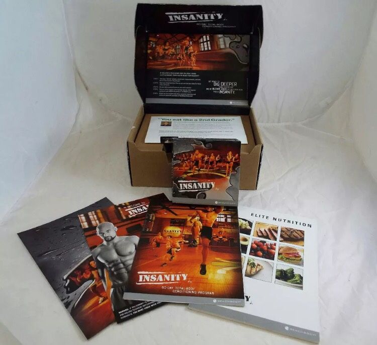 Sealed Beachbody Insanity by Shaun-T. This is the complete 60-day Fitness Program which include all the 14 DVD’s along with the (BONUS DVD) “20-Minute Insane Workout Fast and Furious” and all the paperwork included such as: - Elite Nutrition Guide - 60-Day Workout Calendar - 60-Day Total-Body Conditioning Program - Fit Test