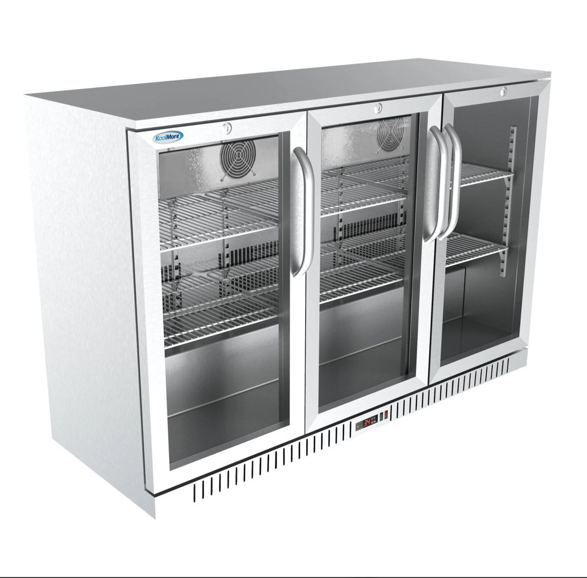 Brand new still in the box 3 door back bar refrigerator 50 % off! Product Information: Size: 53 in, 11 Cu Ft. Item: Three-Door Back Bar Refrigerator