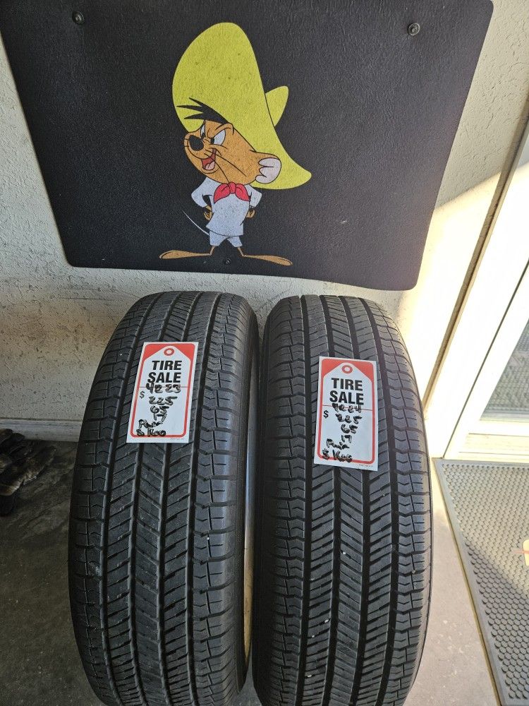 Matching pair of 225/65/17 Yokohama tires. Tires are in like new condition. Free mounting and balance provided on all of our tires, (tire stretching excluded). Pricing is the cash price for all items pictured.