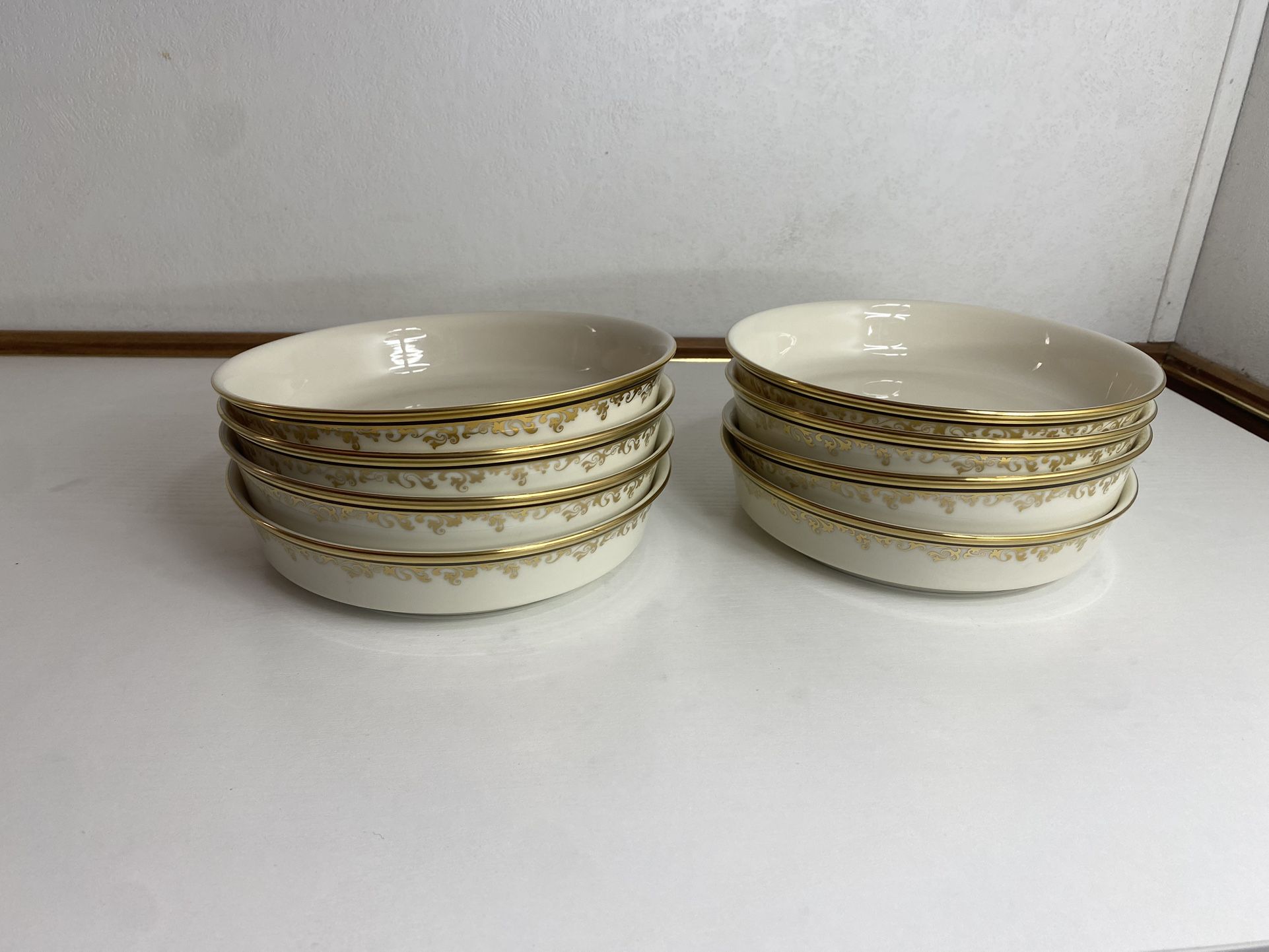 Discontinued Lenox Eclipse Coupe Soup Bowls Set Of 8 Brand New. Product Information Width: 7 1/2 in Height: 1 5/8 in Crafted In USA Hand Wash Discontinued Piece Condition: New!!! doesn't come in the original box. $500 for the set of 8 or $65 each. See all pictures for more details.