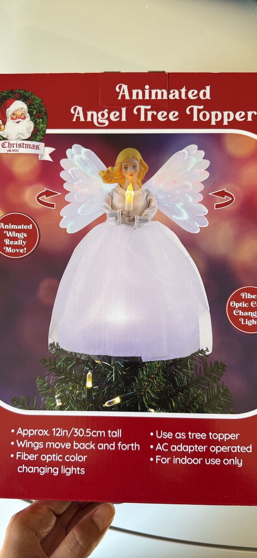 Christmas Tree Angel. Brand New. Wings Moving And Shining With Rainbow Colors. Candle Light Up Too.