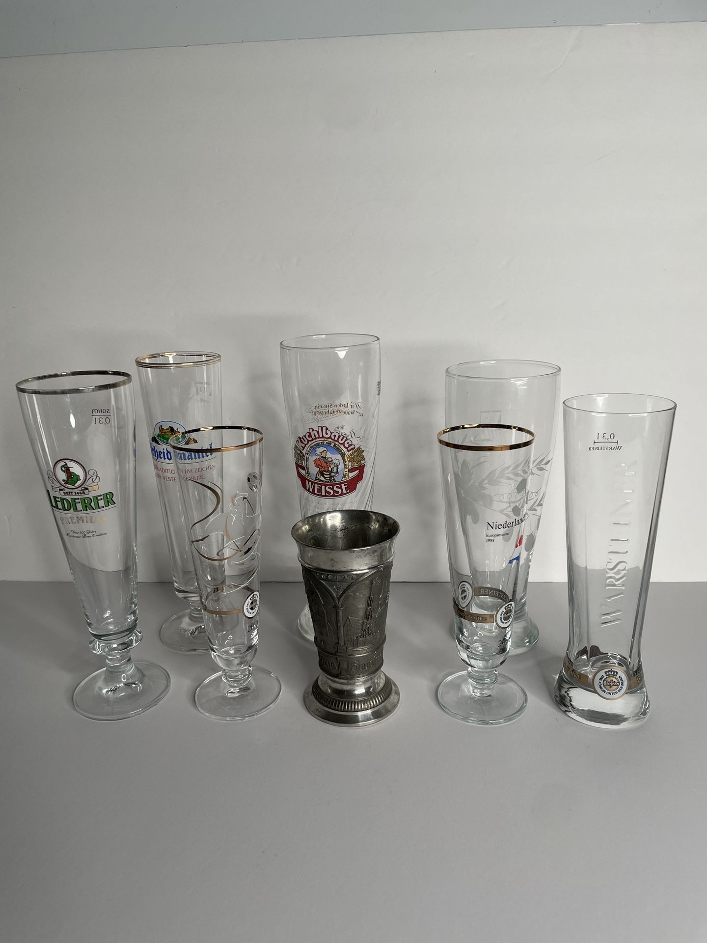 Set Of 8 Rare Vintage German Souvenir Cups 7 Glass Cups 1 Metal Cup