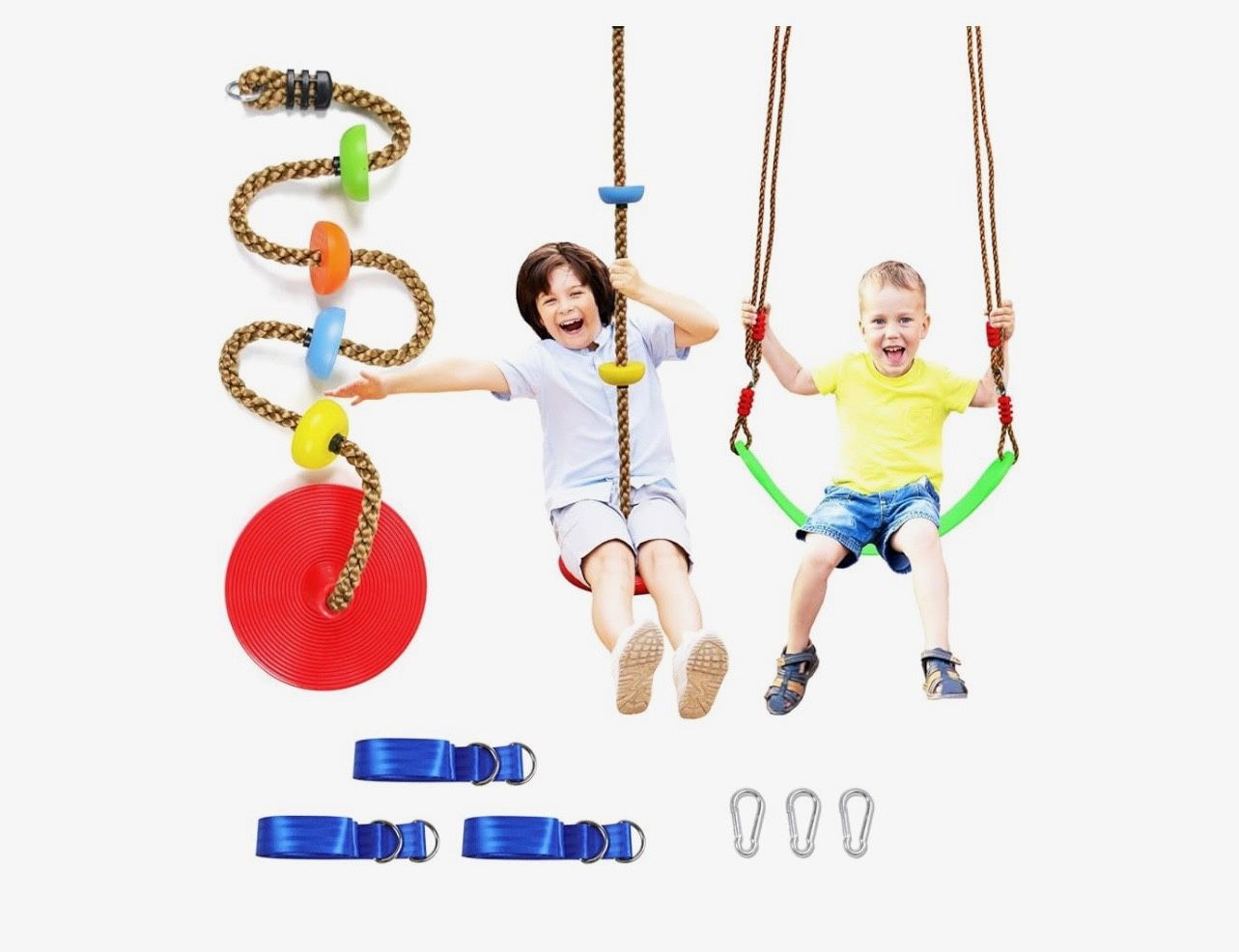 Tree swing climbing rope 2 pack multicolor with platforms red disc swings seat- outdoor playground