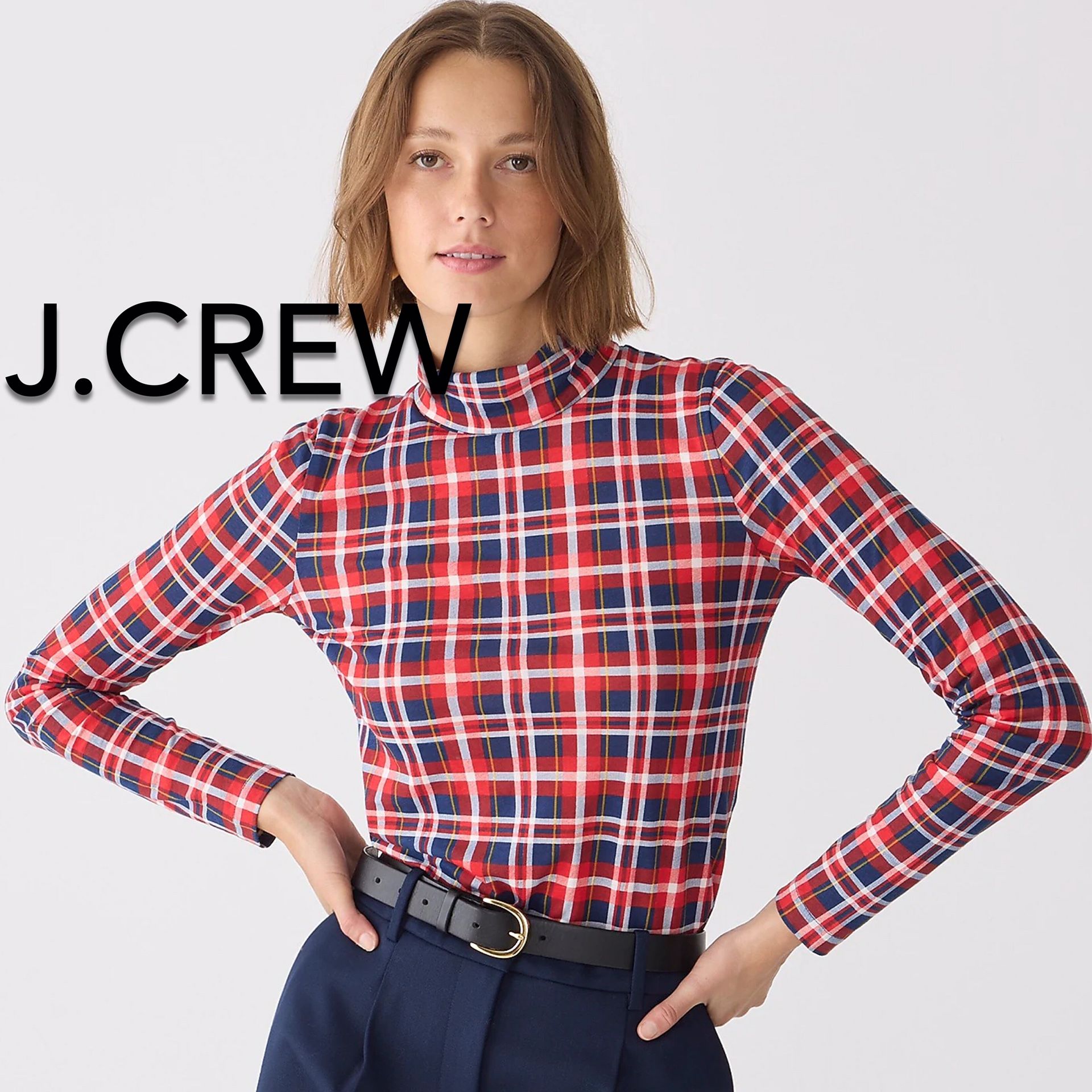 (NEW) WOMEN’S J.CREW TISSUE TURTLENECK IN PLAID - SIZE: MEDIUM
