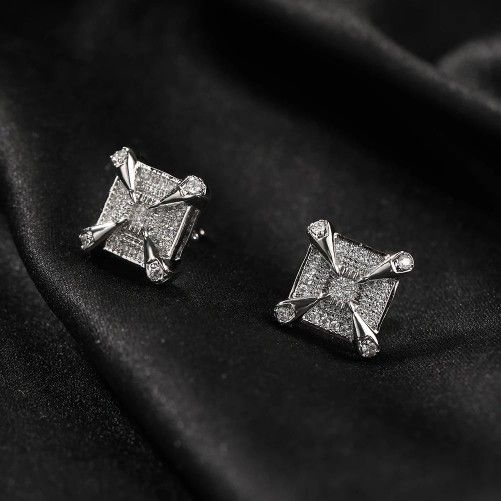 Exquisite Micro Pave 14K Gold Plated Square Claw Cubic Zirconia 12mm Men Women Stud Earrings