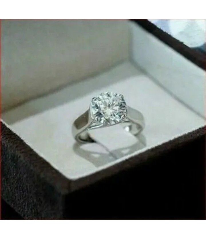 GENUINE 2 CT SILVER MOISSANITE SOLITAIRE RING SIZE 8