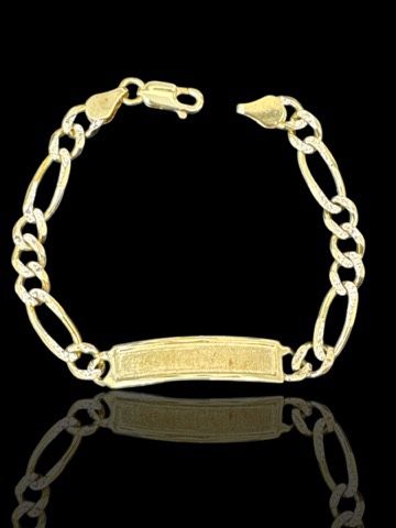 Esclava para bebé fígaro con corte diamantado, Oro 14K, 6.5 pulgadas.