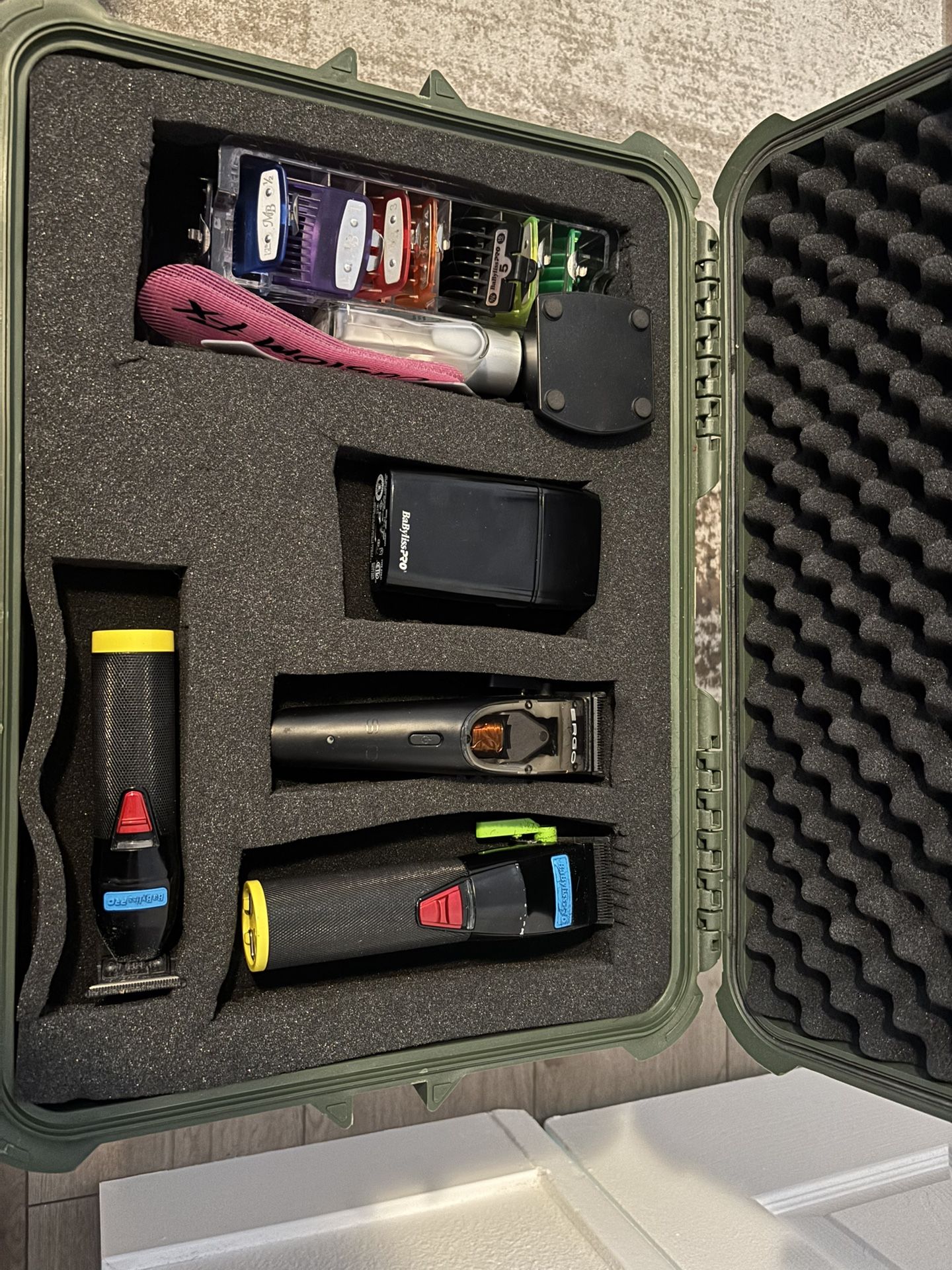 Full Babyliss custom FX set with gamma x ergos and accessories, such as translucent guards, hair clips, shave gel, disinfectant spray, etc. this kid has been used for about five haircuts total three of those being a buzz cut for my son. OBO