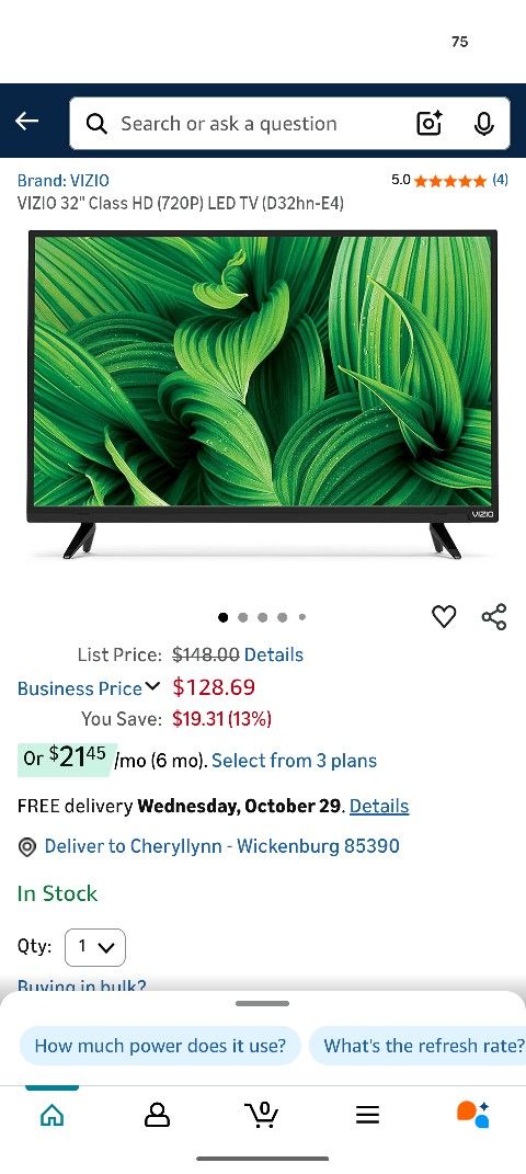 New VIZIO 32" Class HD (720P) LED TV (D32hn-E4)