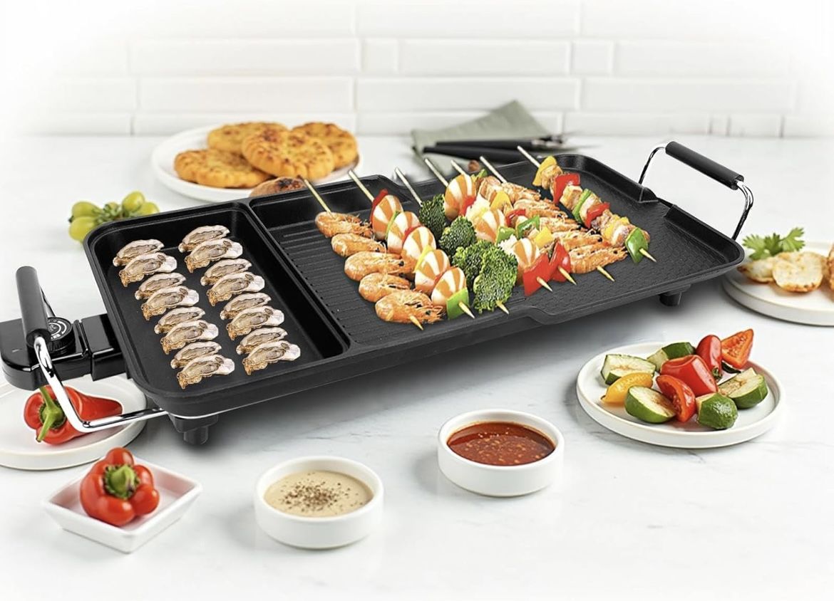 3-in-1 Electric Nonstick Griddle Grill 1800W,Teppanyaki Grill with Removable Temperature Control & Drip Tra