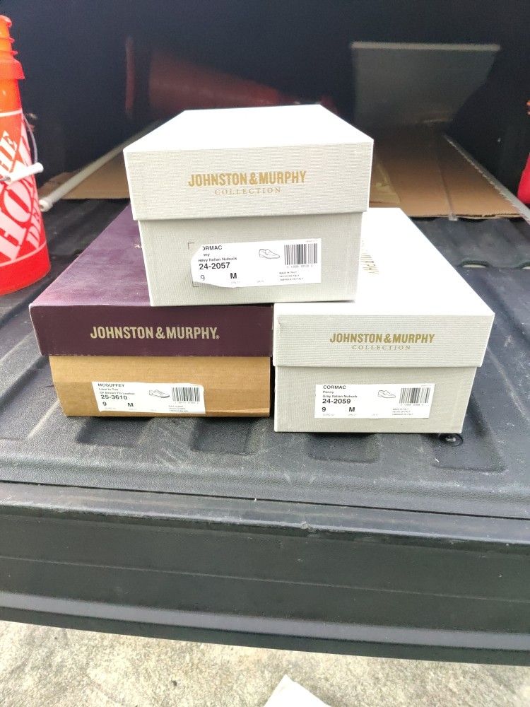 3 pairs of Johnston and Murphy shoes in great condition. I wear a size 10.5, but this brand runs big, so theirs is a size 9. Dress shoes have heel protection, all shoes are in great shape. Pick-up only at or near zip code 33186. Thank you.