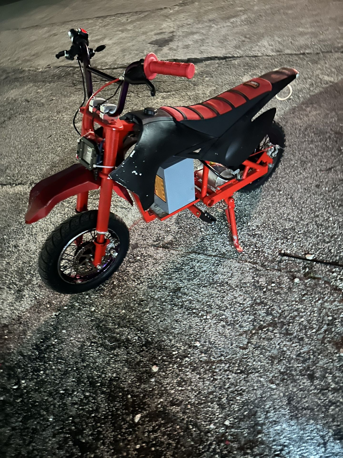 She needs some TLC but she’s ready to run for starters has a brand new $350 battery brand new never used brand new far Driver controller brand new 300w motor that’s over 600$ in brand new parts think about the before lowballing it is priced very reasonable for a ready to run bike does 45 +mph wheelie with no problem needs front brakes better brakes overall a side of that the bike is an excellent running condition E-bike razor electric dirtbike mini bike pitbike motech mx650 mx350 Surron tuttio ev bike enduro emtb