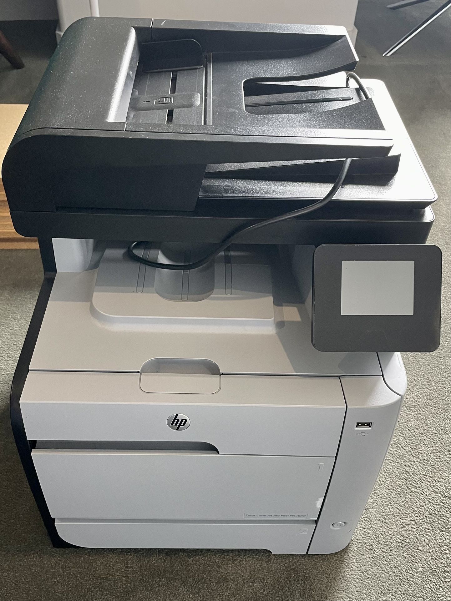 HP CF-385A Copier, Fax, Printer with 11 new 312A toner cartridges. Ex cond. as is pick up deliver