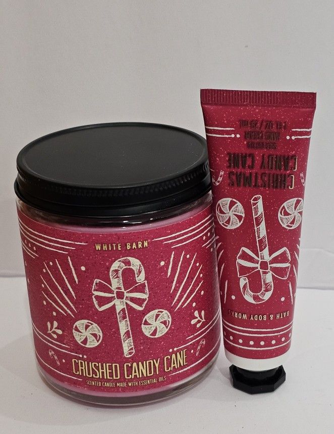 New Bath And Body Works CRUSHED CANDY CANE single wick candle and shea butter hand cream