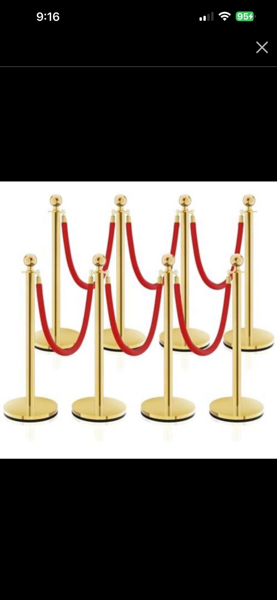 8 Stanchions and Velvet Ropes, Rope Safety Barriers, Waterproof and Rustproof Set