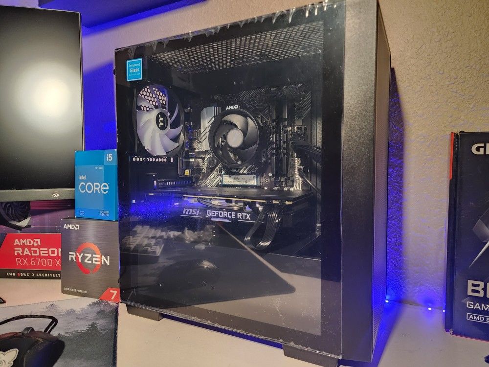 Gaming PC in great condition. Handles heavy games at high settings in 1440p (look through screenshots). Specs: Ryzen 5 5500 RTX 2070 Super 16GB 3200mhz Ram 1TB Kingston NV3 ssd. FREE delivery. Windows 11 activated, glass side panel still in plastic cover. Wifi/Bluetooth included