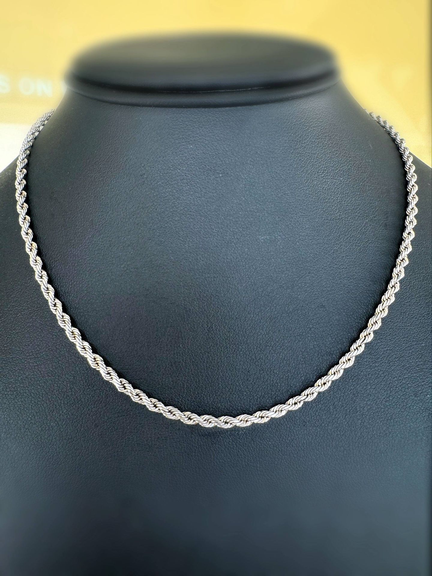This gorgeous chain is made of solid 10k white gold. Style of chain: Rope. Size of chain is 16.5 inches length and 2.7mm width. Total weight: 11.4 grams. This necklace will make your outfit unforgettable and super stylish. Comes with nice gift jewelry box. The best choice for you. Perfect gift! β€οΈππ We buy Rolex and Audemars, patek. Do layaway in vipawn Boca Raton π₯ππΈ